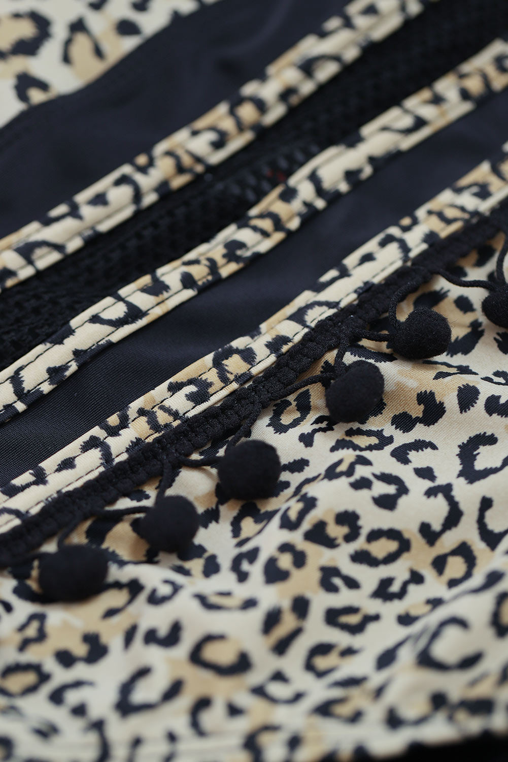 Printed Pompom Detail Halter Neck Two-Piece Bikini Set